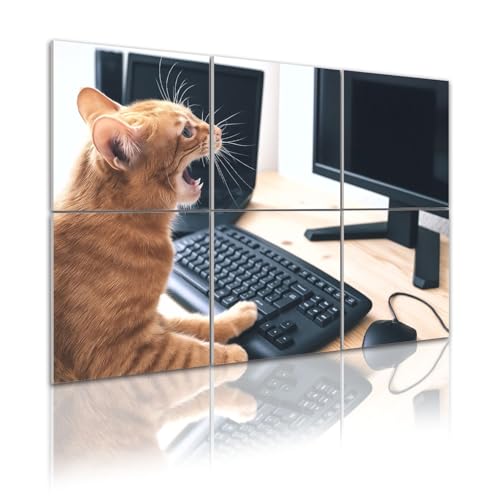 6-Pack Art Acoustic Panels — Self-Adhesive “Cat Angry About Working From Home” • 48" x 72" Sound Absorbing Wall Panels
