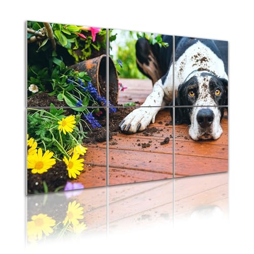 - 6-pack art acoustic panels (dog digging garden design) — total coverage 48" x 72" (each panel 24" x 24", 0.4" thick)
