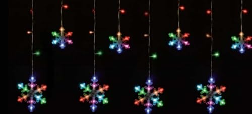 - 36 ft strand with 288 LEDs and 24 snowflake-shaped drops — plug-and-play, no assembly required