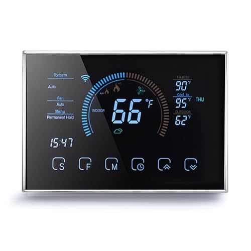 The FTVOGUE thermostat features a vibrant LCD screen and voice control, making it easy to manage your home's temperature remotely. It's designed for energy efficiency and seamless integration with heat pump systems, ensuring comfort and savings all year round.