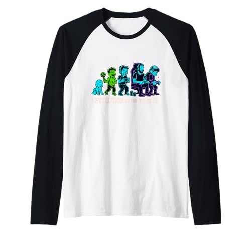 Make a statement every time you play. This funny video game shirt captures the evolution of gamers — from handhelds and classic consoles to modern VR headsets — in colorful retro-inspired artwork. A perfect raglan baseball tee for gamers, geeks, and anyone who loves gaming humor.