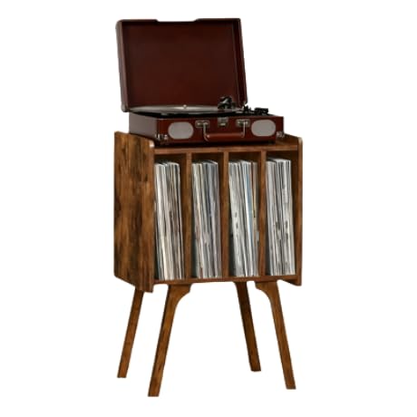 The TBQA record player stand offers ample storage for up to 100 vinyl records and a sturdy tabletop for your turntable and speakers. Its stylish design makes it a perfect addition to any modern or retro-themed room.
