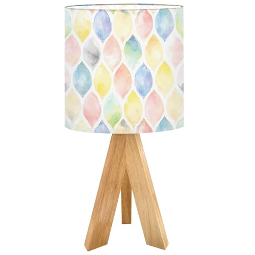Tripod Table Lamp — Multicolor Geometric Arc Nursery & Kids Room Lamp with Linen Lampshade