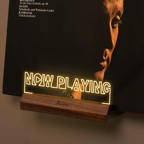 Onmiwod Light Up Now Playing Vinyl Record Stand Wall Mount — Vinyl Album Display & Record Holder with Adjustable Warm White Light
