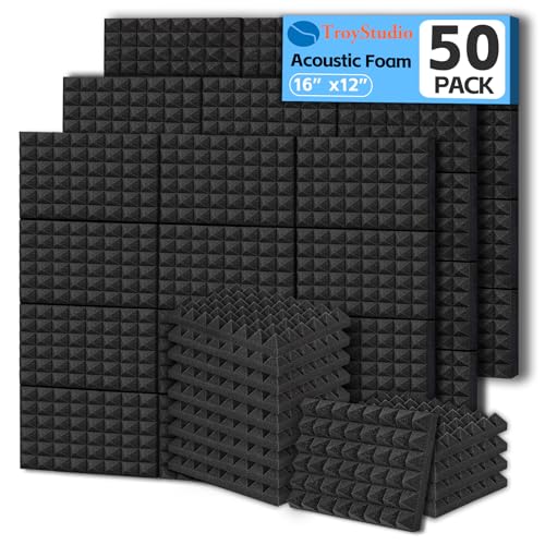 Transform any room into a pro-sounding space with TroyStudio Thick Acoustic Foam Panels. These 50-pack pyramid sound absorbing foam tiles cover 66.6 sq ft and are designed to reduce echo, tame reverb, and improve clarity for recording studios, home theaters, gaming rooms, podcasts, and more.
